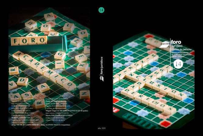 La Revista Foro Jurídico N° 14 siguiendo el carácter interdisciplinario que la caracteriza, abarca temas de las ramas del Derecho Penal, Derecho Laboral, Derechos Humanos, Derecho de Familia, Derecho Tributario, Derecho Administrativo, entre otros. Para mayor conocimiento y lectura de los temas y artículos tratados