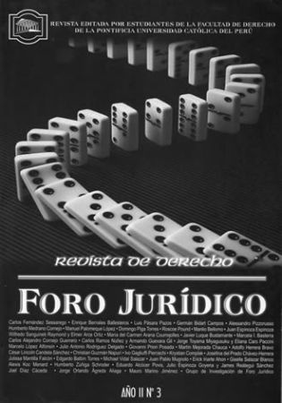 Foro Jurídico es una Revista de Derecho de periodicidad anual, editada y publicada, tanto en formato impreso como electrónico, por parte de la Comisión de Publicaciones de la Asociación Civil Foro Académico. Foro Jurídico es una herramienta que permite al operador jurídico (abogado profesional, estudiante de Derecho y público académico en general) ampliar sus conocimientos a través de sus artículos, escritos por reconocidos profesores y abogados tanto a nivel nacional como internacional.