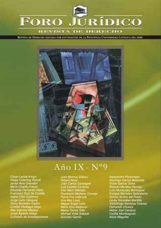 La Revista Foro Jurídico N° 9 siguiendo el carácter interdisciplinario que la caracteriza, abarca temas de las ramas del Derecho Civil, Derecho Constitucional, Derecho Procesal, Filosofía del Derecho, Derecho Tributario, Derecho Financiero, entre otros. Para mayor conocimiento y lectura de los temas y artículos tratados